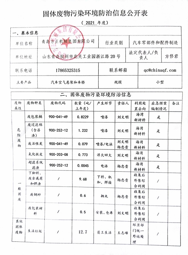 固体废物污染环境防治信息公开表